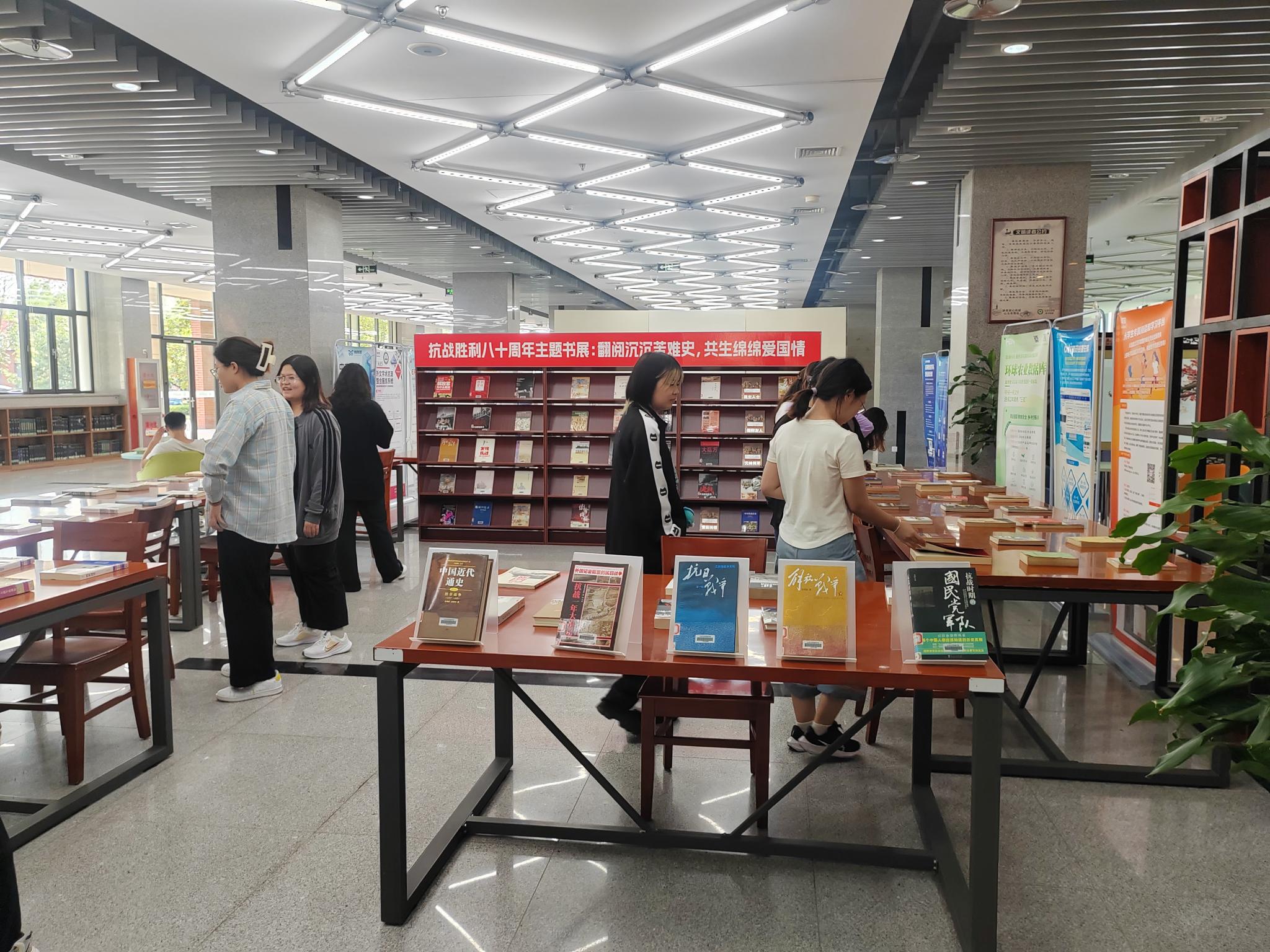 为铭记抗战历史、传承爱国精神,在抗战胜利八十周年之际,图书馆在大厅开展“纪念抗战胜利八十周年主题书展”,以丰富的文献资源搭建历史与当下的对话桥梁,引导广大师生在书香中重温峥嵘岁月,厚植家国情怀。