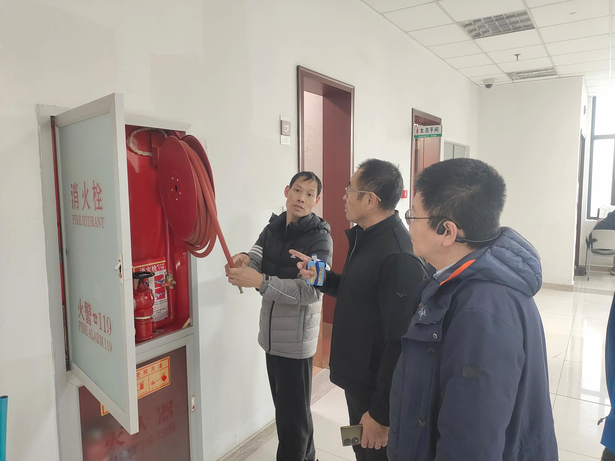 完成老馆检查后,检查小组随即前往新馆,展开更为细致的全方位排查。在各楼层消防栓检查中,工作人员通过现场开启阀门试水的方式,精准判断水管供水是否顺畅、水压是否充足、有无漏水情况;对全馆烟感报警器进行逐一检查,确保每一个设备都能及时捕捉烟雾信号并发出警报;严格检查消防通道是否存在杂物堆放、标识是否清晰醒目、防火门是否能正常关闭等情况,保障疏散通道时刻畅通无阻;逐一清点各区域灭火器的配置数量、摆放位置,仔细检查其外观完好度及压力状态,确保齐全有效;胡胜民师傅着重对三层会议室墙体上安装的红外对射装置的工作原理进行讲解,同时核查温感设备的感应精度,保障重点区域的消防安全监测无死角。此外,检查小组还专门对档案馆周边的灭火设备及烟感报警器进行专项检查,确保这一馆藏重要档案资料的特殊区域消防防护措施落实到位。